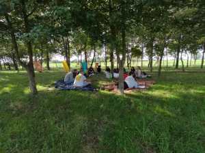 L’area verde alberata coi cavalli in libertà dove si è svolta la prima parte dell’attività era stata già allestita con delle sedute per dare a ciascuno un posto ben definito che facesse da punto di riferimento per le consegne e le condivisioni dell’esperienza