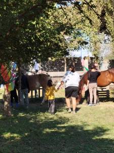 Al secondo incontro presso la sede operativa di Equamente-un cavallo per amico hanno partecipato 4 ragazzi e 4 bambini con 5 accompagnatori provenienti da Baobab e Altre Idee.